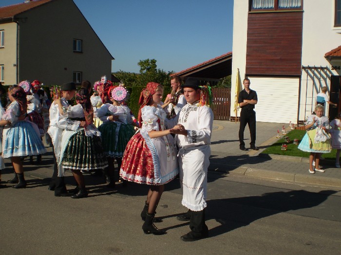 14.30 hod. - průvod od 2. stárka ke 2. stárce a ke KD . K tanci a poslechu hrála DH Sokolka ze Šakvic.
